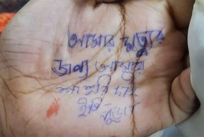 হাসপাতালে পূজার হাতের তালুতে একটি সুইসাইড নোট দেখা যায়। এতে লেখা, ‘আমার মৃত্যুর জন্য আমার শাশুরি দাই (শাশুড়ি দায়ী)।