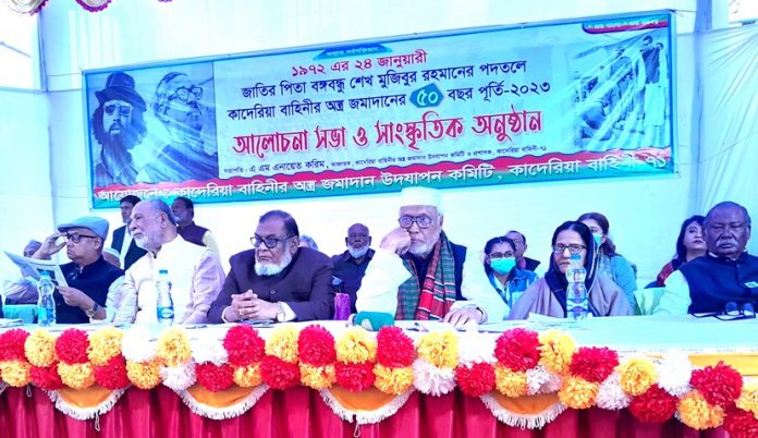 মঙ্গলবার (২৪ জানুয়ারি) বিকেলে টাঙ্গাইল কেন্দ্রীয় শহীদ মিনারে আয়োজিত ১৯৭২ সালের ২৪ জানুয়ারি বঙ্গবন্ধু শেখ মুজিবুর রহমানের পদতলে কাদেরিয়া বাহিনীর অস্ত্র জমাদানের ৫০ বছর পূর্তি উদযাপন অনুষ্ঠানে তিনি এসব কথা বলেন।