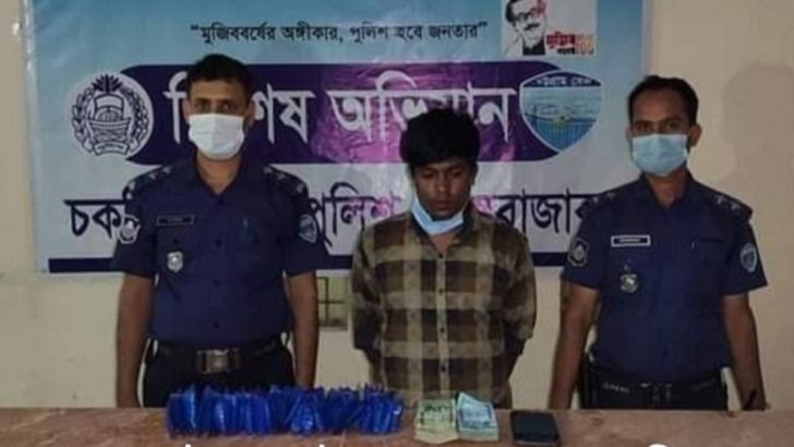 কক্সবাজারের চকরিয়ায় একটি কুরিয়ার সার্ভিসের অফিস থেকে ইয়াবা ও নগদ টাকাসহ এক যুবককে আটক করেছে পুলিশ। আটক ব্যক্তির নাম নুর মোহাম্মদ (২৬)। তিনি উপজেলার সাহারবিল ইউনিয়নের রামপুর গ্রামের ইজ্জত আলীর ছেলে। পুলিশ জানায়, বুধবার বিকালে পৌর বাস টার্মিনালসংলগ্ন এসএ পরিবহনের কুরিয়ার সার্ভিসের অফিস কক্ষে অভিযান চালানো হয়। এ সময় বৈদ্যুতিক বাল্বের প্যাকেটে ইয়াবা পাচারকালে নুর মোহাম্মদকে আটক করা হয়।