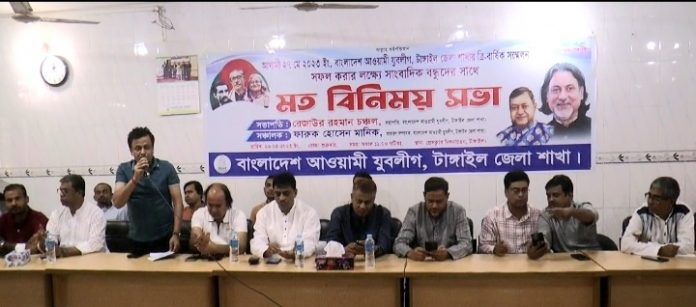 আগামীকাল টাঙ্গাইল জেলা যুবলীগের ত্রি-বার্ষিক সম্মেলন অনুষ্ঠিত হবে। সম্মেলনের সাবির্ক প্রস্ততি বিষয়ে আজ টাঙ্গাইল প্রেসক্লাবে যুবলীগের নেতৃবৃন্দ সাংবাদিকদের সাথে মতবিনিময় করেছেন। সভায় কেন্দ্রীয় যুবলীগের প্রেসিডিয়াম সদস্য মামুনুর রশীদ মামুন, যুগ্ম সম্পাদক রফিকুল আলম জোয়ার্দার সৈকত, সাংগঠনিক সম্পাদক জহির উদ্দিন খসরুসহ অন্যান্য নেতৃবৃন্দ উপস্থিত ছিলেন।