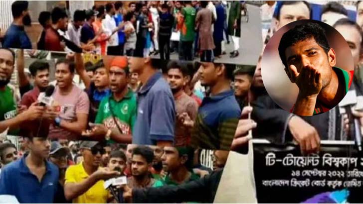 মানববন্ধনে বিশ্বকাপ দলে মাহমুদউল্লাহ রিয়াদকে অন্তর্ভূক্তির দাবিসহ নানা স্লোগান দিতে দেখা যায় তাদের।