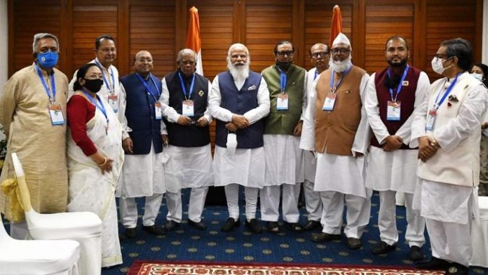 ঢাকায় সফররত ভারতের প্রধানমন্ত্রী নরেন্দ্র মোদির সঙ্গে সাক্ষাৎ করেছেন আওয়ামী লীগ নেতৃত্বাধীন ১৪ দলের নেতারা। আজ শুক্রবার দুপুর ২টার দিকে রাজধানীর হোটেল সোনারগাঁওয়ে ভারতের প্রধানমন্ত্রীর সঙ্গে সাক্ষাৎ করেন ১৪ দলের নেতারা। ১৪ দলের সমন্বয়ক ও মুখপাত্র এবং আওয়ামী লীগের উপদেষ্টামণ্ডলীর সদস্য আমির হোসেন আমুর নেতৃত্বে দলটিতে ছিলেন আওয়ামী লীগের উপদেষ্টামণ্ডলীর সদস্য বর্ষীয়ান নেতা তোফায়েল আহমদ, ওয়ার্কার্স পার্টির সভাপতি রাশেদ খান মেনন, সাধারণ সম্পাদক ফজলে হোসেন বাদশা, জাসদ একাংশের সভাপতি হাসানুল হক ইনু, সাধারণ সম্পাদক শিরিন আখতার, জাসদের আরেকটি অংশের সভাপতি শরীফ নুরুল আম্বিয়া, তরিকত ফেডারেশনের সভাপতি নজিবুল বশর মাইজভান্ডারীসহ অনেক শীর্ষ নেতারা।