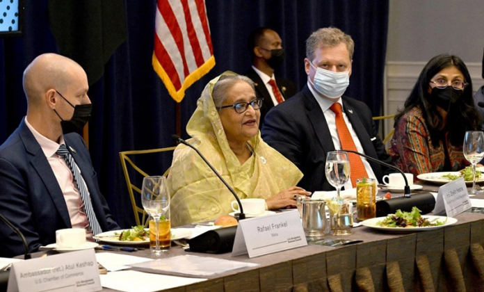 প্রধানমন্ত্রী উল্লেখ করেন, ২০২১-২২ সালে যুক্তরাষ্ট্রে বাংলাদেশের রপ্তানি ছিল প্রায় ১০ দশমিক ৪২ বিলিয়ন মার্কিন ডলার এবং আমদানি ছিল প্রায় ২ দশমিক ৮ বিলিয়ন মার্কিন ডলার। শেখ হাসিনা বলেন, জাতির পিতা বঙ্গবন্ধু শেখ মুজিবুর রহমান একটি সোনার বাংলার স্বপ্ন দেখেছিলেন যেখানে বাংলাদেশের সাধারণ মানুষ একটি শোষণমুক্ত সমাজ এবং পূর্ণ অর্থনৈতিক মুক্তি পাবে, তিনি আরও বলেন, ‘আমার সরকার বঙ্গবন্ধুর অসমাপ্ত স্বপ্ন বাস্তবায়নে নিরলসভাবে কাজ করে যাচ্ছে।’