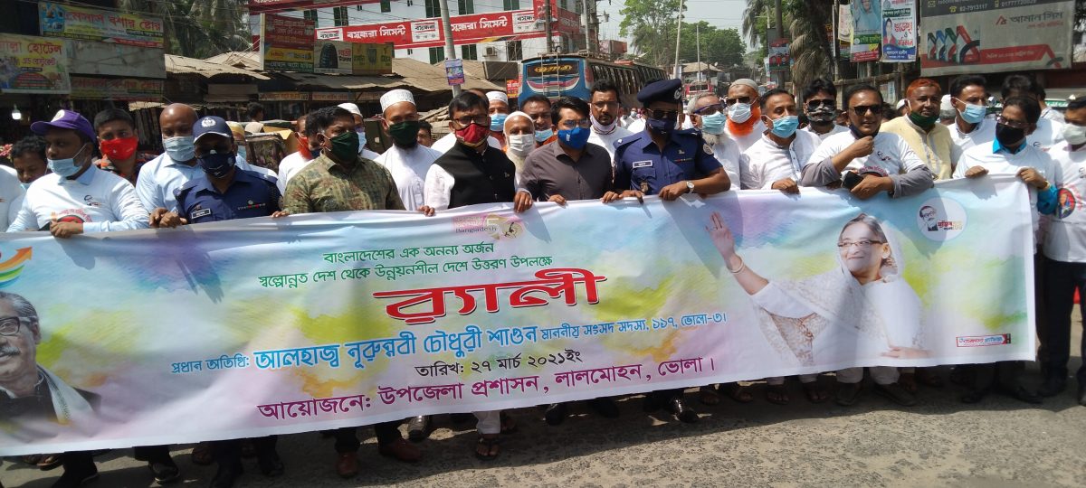 লালমোহন উপজেলা প্রশাসনের উদ্যোগে আজ শনিবার (২৭ মার্চ) সকালে উন্নয়ন মেলা উপলক্ষে এক বর্নাঢ্য র্যালী বের করা হয়। র্যালীটি লালমোহন মাধ্যমিক বিদ্যালয়ের মাঠ থেকে শুরু হয়ে সজিব ওয়াজেদ জয় ডিজিটাল পার্কে গিয়ে শেষ হয়।