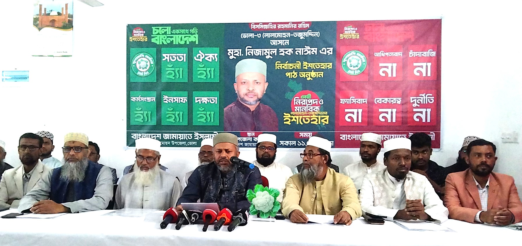 ৯ দফা ইশতেহার হলো- ১. চাঁদাবাজ-দুর্নীতিমুক্ত, বৈষম্যহীন সুশাসন ও কার্যকর সংসদীয় প্রতিনিধিত্ব। ২. নিরাপত্তা,সামাজিক সুরক্ষা ও নদী ভাঙ্গনমুক্ত নিরাপদ উপকূল প্রতিষ্ঠা করা হবে। ৩. উন্নত অবকাঠামো,যোগাযোগ ও নাগরিক সুবিধার সবুজ লালমোহন-তজুমদ্দিন প্রতিষ্ঠা করা হবে। ভোলা-বরিশাল সেতু নির্মাণে ভূমিকা পালন করা হবে। ভোলা-চরফ্যাশন সড়ক ৪ লেনে উন্নীত করার চেষ্টা করা হবে। উপজেলার প্রধান সড়কগুলো ২ লেনে উন্নীত করা। ভোলায় বিমান বন্দর চালু উদ্যোগ গ্রহণ করা হবে। মেঘনা ও তেতুলিয়া নদীতে জেগে উঠা চর সমূহে উন্নয়ন, উৎপাদন, জমির ন্যায্য বন্টন ও জমির মালিকদের হয়রানি বন্ধ করে সকল ধরনের চুরি, ডাকাতি এবং জুলুম নির্মূল করা হবে। ৪. উন্নত নৈতিক শিক্ষা নিশ্চিত করে দক্ষতা উন্নয়ন ও ১০০% সাক্ষরতার উদ্যোগ গ্রহন করা হবে। উন্নত ও নৈতিক শিক্ষা,১০০% স্বাক্ষরতা, শিক্ষা ব্যয় হ্রাস এবং মানসম্মত শিক্ষা নিশ্চিত করা। সকল মক্তব, প্রাইভেট শিক্ষা প্রতিষ্ঠান, ক্বওমী মাদরাসা সমূহকে বিশেষ সহায়তা প্রদান করা হবে। ভোলায় একটি পাবলিক বিশ্ববিদ্যালয় ও একটি মেডিকেল কলেজ স্থাপন এবং কারিগরি শিক্ষাপ্রতিষ্ঠান গড়ে তোলা। মসজিদের ইমাম, মুয়াজ্জিন ও খাদেমদের জন্য মানসম্মত সম্মানীর ব্যবস্থা করা হবে। মন্দির ও অন্যান্য ধর্মীয় প্রার্থণাগারের কর্মকর্তাদের জন্য সম্মানীর ব্যবস্থা করা হবে। ৫. সবার জন্য কর্মসংস্থান, ব্যবসার নিরাপদ পরিবেশ ও অর্থনৈতিক সমৃদ্ধির প্রচেস্টা চালানো হবে। ৬. সহজ ও মানসম্মত স্বাস্থ্যসেবা নিশ্চিত করার জন্য উপজেলা হাসাপাতাল সমূহকে উন্নত ও সমৃদ্ধ করা হবে। উপজেলা স্বাস্থ্য কমপ্লেক্সগুলোকে আধুনিক যন্ত্রপাতি, আইসিইউ বেড এবং বিশেষজ্ঞ ডাক্তার দ্বারা সমৃদ্ধ করা হবে, যেন উন্নত চিকিৎসার জন্য মানুষকে দূরে যেতে না হয়। প্রাথমিক স্বাস্থ্যসেবা, দরিদ্র ও প্রান্তিক জনগোষ্ঠীর জন্য কম খরচে চিকিৎসা এবং বিনামূল্যে মাতৃ ও শিশু স্বাস্থ্যসেবা নিশ্চিত করতে ইউনিয়ন ভিত্তিক পর্যাপ্ত নগর স্বাস্থ্যকেন্দ্র ও কমিউনিটি ক্লিনিক স্থাপন ও সংষ্কার করা। ইউনিয়ন স্বাস্থ্যকেন্দ্রগুলোকে ২৪ ঘণ্টা জরুরী স্বাস্থ্যসেবা চালু রাখা। দুর্গম চর ও গ্রামীণ এলাকার জনগণের জন্য ভ্রাম্যমাণ মেডিকেল ইউনিট চালু করা এবং প্রয়োজনে জেলা বা বিশেষায়িত হাসপাতালে স্থানান্তরের জন্য গ্রাম ক্লিনিক টু স্পেশালিস্ট রেফারেল ব্যবস্থা চালু করা। ৭। মাদক-চুরি-ছিনতাই, সন্ত্রাসমুক্ত ও দল-মত, ধর্ম-বর্ন নির্বিশেষে সবার জন্য বাসযোগ্য সমাজ প্রতিষ্ঠা। ৮. স্বাধীন গণমাধ্যম প্রতিষ্ঠার জন্য প্রযোজনীয় সহায়তা প্রদান।