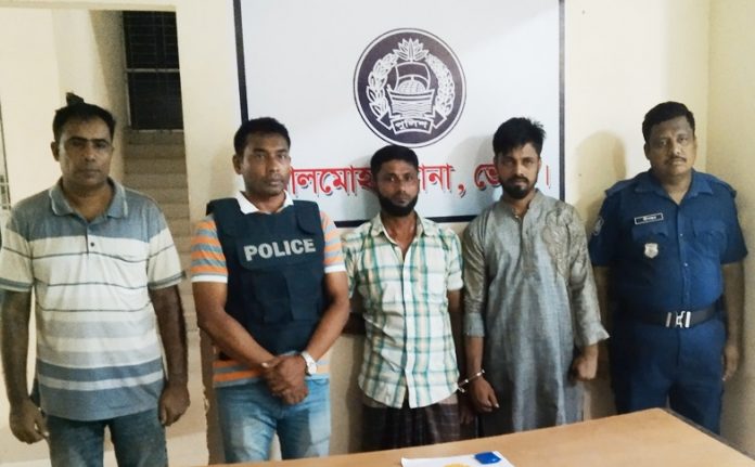 শুক্রবার রাত ৮টার দিকে উপজেলার পশ্চিম চরউমেদ ইউনিয়নের গজারিয়া পশ্চিম বাজার থেকে তাদেরকে আটক করা হয়। আটক মনির হোসেন ওই ইউনিয়নের ৩নং ওয়ার্ডের বাসিন্দা ফারুক ফরাজির ছেলে এবং আনোয়ার হোসেন একই ইউনিয়নের ৫নং ওয়ার্ড পাঙ্গাশিয়া গ্রামের শাহজাহানের ছেলে। লালমোহন থানার ভারপ্রাপ্ত কর্মকর্তা মাহবুবুর রহমান বলেন, নিয়মিত মাদক উদ্ধার অভিযানের অংশ হিসেবে গোপন সংবাদের ভিত্তিতে অভিযান চালিয়ে দুইজন কে আটক করা হয় এবং তাদের এক সহযোগী পালিয়ে যেতে সক্ষম হয়। এসময় আটককৃতদের কাছ থেকে একশত পিস ইয়াবা উদ্ধার করা হয়। এ ঘটনায় আটককৃতদের বিরুদ্ধে মাদকদ্রব্য নিয়ন্ত্রণ আইনে মামলা দায়ের করা হয়েছে।