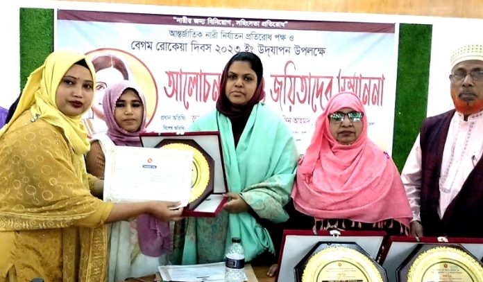 সম্মাননা প্রাপ্তরা হলেন- অর্থনৈতিকভাবে সাফল্য অর্জনকারী নারী জান্নাতুল ফেরদাউস রুমি, শিক্ষা ও চাকরি ক্ষেত্রে সাফল্য অর্জনকারী নারী মোসা. হোসনে আরা বেগম, সফল জননী নারী হোসনেয়ারা বেগম, নির্যাতনের বিভীষিকা মুছে ফেলে নতুন উদ্যমে জীবন শুরু করা নারী পারভীন বেগম এবং সমাজ উন্নয়নে অসামান্য অবদান রাখায় রাবেয়া বেগম।