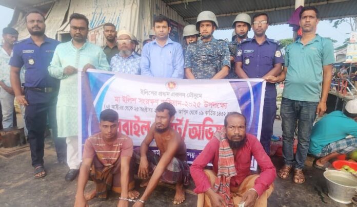 এ সময় নিষেধাজ্ঞা অমান্য করে নদীতে মাছ শিকারের দায়ে ৩ জেলেকে আটক করা হয়। এছাড়া জব্দ করা হয় ২০ হাজার মিটার অবৈধ জাল এবং বিভিন্ন প্রজাতির ২০ কেজি মাছ। পরে বিকেলে উপজেলার বদরপুর ইউনিয়নের নাজিরপুর মৎস্যঘাটে আটককৃত জেলেদের ভ্রাম্যমাণ আদালতের মাধ্যমে ৫ হাজার টাকা করে মোট ১৫ হাজার টাকা অর্থদণ্ড প্রদান করেন উপজেলা নির্বাহী কর্মকর্তা ও নির্বাহী ম্যাজিস্ট্রেট মো. শাহ আজিজ।