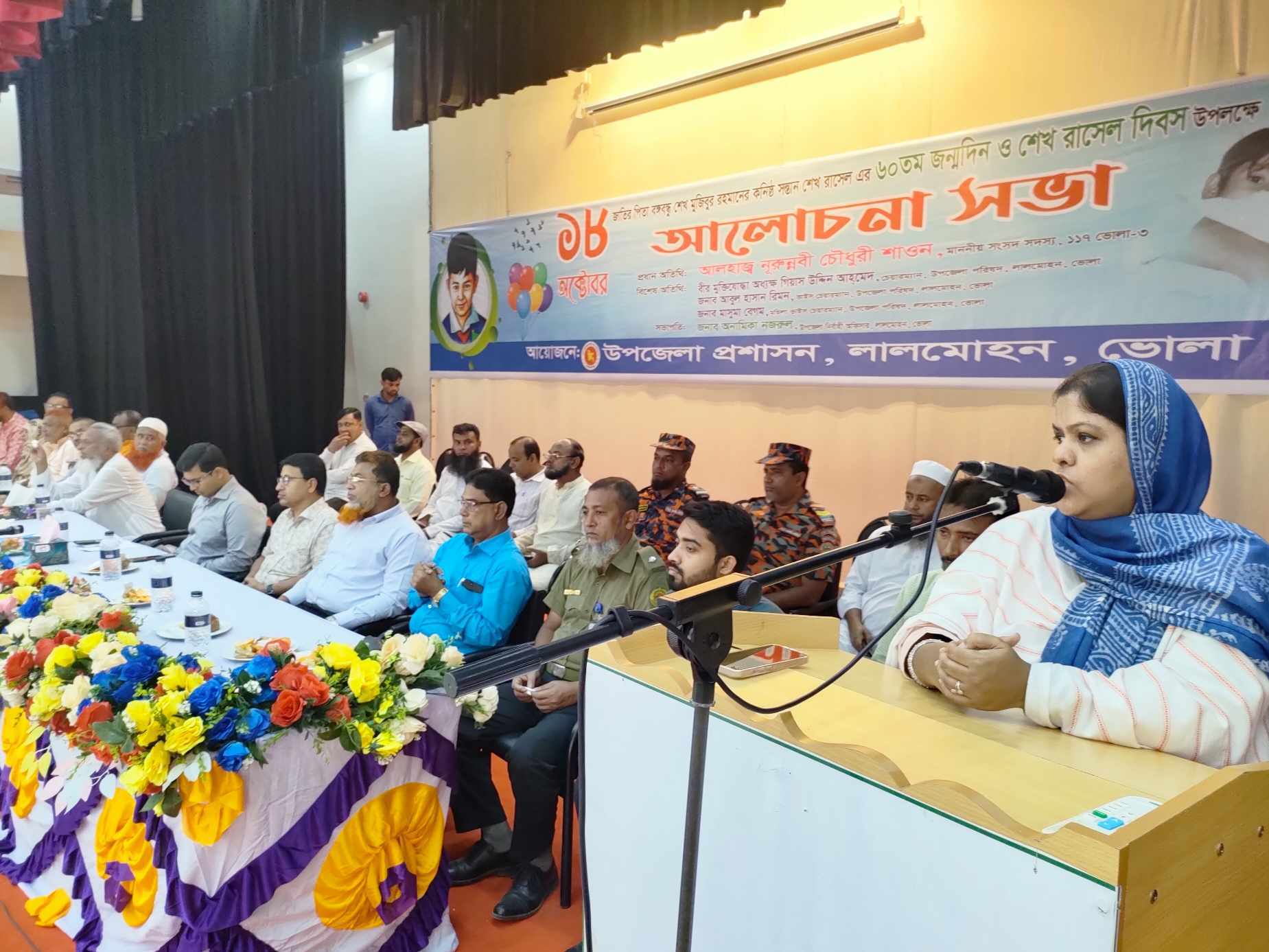 ভোলার লালমোহনে ১৮ অক্টোবর জাতির পিতা বঙ্গবন্ধু শেখ মুজিবুর রহমানের কনিষ্ঠ সন্তান শেখ রাসেল এর ৬০তম জন্মদিন ও শেখ রাসেল দিবস পালন করা হয়েছে। লালমোহন উপজেলা প্রশাসনের আয়োজনে বুধবার সকালে শেখ রাসেলের প্রতিকৃতিতে পুষ্পার্ঘ অর্পণ করে শ্রদ্ধা জানানো হয়।
