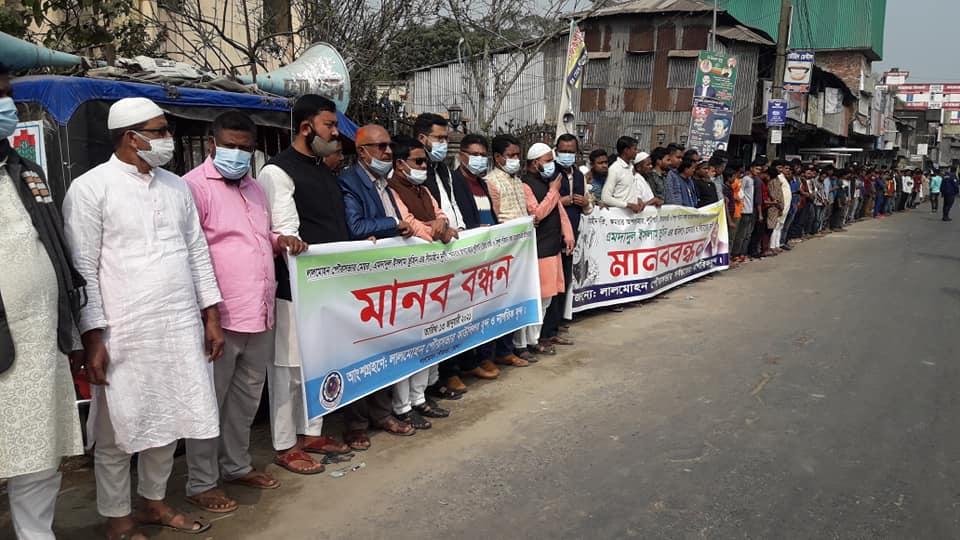 লালমোহন পৌরসভার কাউন্সিলরবুন্দ ও নাগরিকবৃন্ধের ব্যানারে মানববন্ধনে অনান্যের মধ্যে বক্তব্য রাখেন লালমোহন পৌরসভার ১১ নং ওয়ার্ড কাউন্সিলর এহছানুল হক ফরিদ, ১২ নং ওয়ার্ড কাউন্সিলর জসিম ফরাজী ও স্থানীয় জনগনের পক্ষে বক্তব্য রাখের নিয়াজ মুশফিক প্রমূখ।