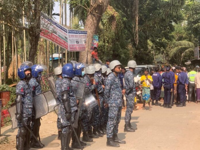 ভোলার লালমোহন উপজেলার ধলীগৌর নগর ইউনিয়নের হাজিরহাট বাজার এলাকায় হ্যাঁ ও না ভোটকে কেন্দ্র করে বিএনপি জামায়াতের মুখোমুখি অবস্থানের ঘটনা ঘটেছে। খবর পেয়ে পুলিশ ও নৌবাহিনীর যৌথ টহলে পরিস্থিতি নিয়ন্ত্রণে আসে।