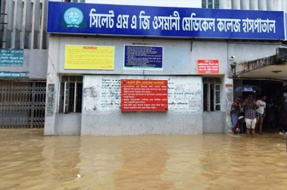 উজান থেকে নেমে আসা পানি এবং বারি বৃষ্টিপাতের কারনে সিলেটে বন্যায় ভয়াবহ পরিস্থিতি তৈরি হয়েছে। সিলেট ওসমানী মেডিকেল কলেজ ও হাসপাতালের ভিতরে পানি ডুকেছে। এই সময়ে হাসপাতালে কোন রোগী মৃত্যুবরণ করা ব্যক্তিদের লাশ দাফন করা নিয়েও নানা দুর্ভোগে পড়েছেন স্বজনরা।